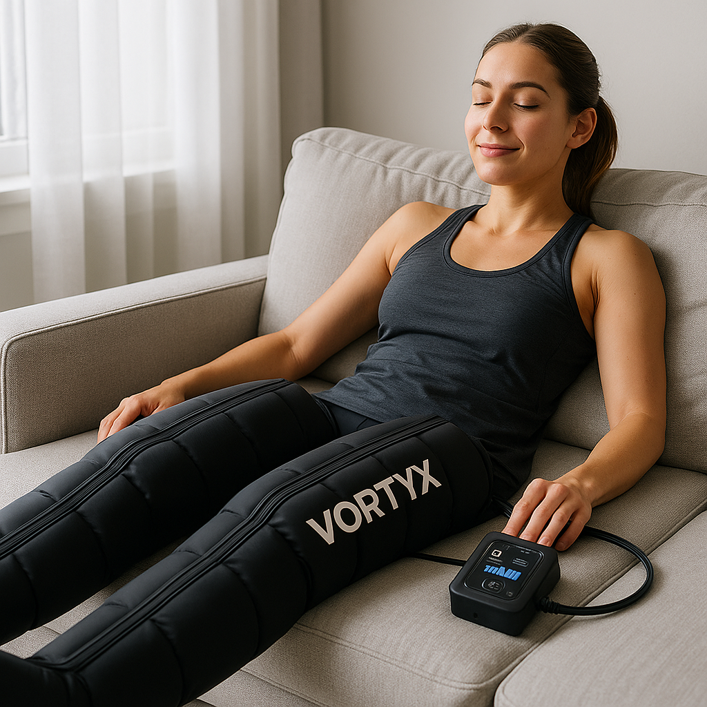 Les bottes de pressothérapie Vortyx Pro utilisent un système d’air comprimé intelligent qui applique une pression séquentielle pour favoriser la circulation sanguine, drainer les toxines et accélérer la récupération musculaire.